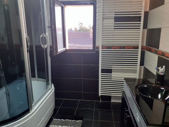 Se ofera spre vanzare, casa familiala construita in anul 2017, din BCA, cu fundatie din beton armat, izolata in interior si exterior cu polistiren expandat. La parter se afla un garaj dublu cu usa cu telecomanda, sala de fitnes, baie cu dus. Accesul la etajele I si II se face pe scari separate. Fiecare etaj al casei dispune de centrala termica proprie si de sistem de aer conditionat propriu. La etajul I se afla trei dormitoare, baie cu jacuzzi, camera de zi, loc de servit masa, acces pe balcon. Camerele sunt cu parchet laminat, baile, holul, bucataria, sunt gresiate si faiantate. Toate incaperile sunt mobilate cu mobila executata la comanda, geamuri termopane cu sapte camere, plasa antiinsecte, jaluzele, usile interioare sunt termopane. La etajul II este aceeasi compartimentare, cu deosebirea ca baia este prevazuta cu cabina de dus. La fiecare nivel exista interfon propriu, imobilul este supravegheat cu camere video.