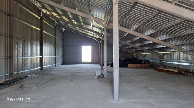 Se ofera spre inchiriere doua hale de depozitare, in suprafata de aprox 500mp fiecare ( 31 m lungime, 16 m latime), cu curent monofazat, de perspectiv si dotare cu curent trifazic. Unul dintre depozite este de constructie noua, cu schelet metalic si pereti din tabla cutata, cu poarta de intrare glisanta, cu posibilitate de patrundere in incinta cu camionul ( dimens poarta 5,90x5 metri). Al doilea spatiu este cu structura de rezistenta din lemn, peretii din tabla cutata, intariti cu tabla striata, usa de la intrare este batanta cu dimensiuni 5,90x4,90 metri. Spatiul este ideal pentru depozitare de produse agricole, este situat in zona centrala, cu acces facil de la sosea asfaltata, in comuna Tiream, jud.Satu Mare.
